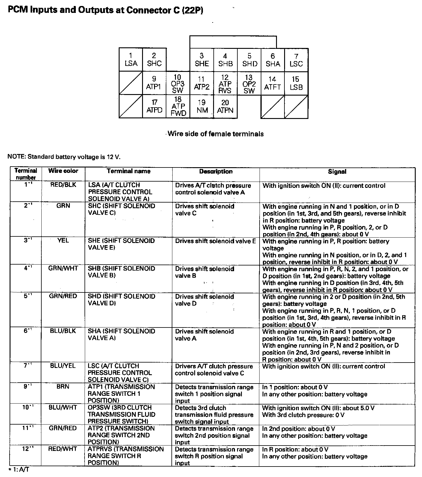 PCM Inputs And Outputs At Connector C (22P) Part 1: