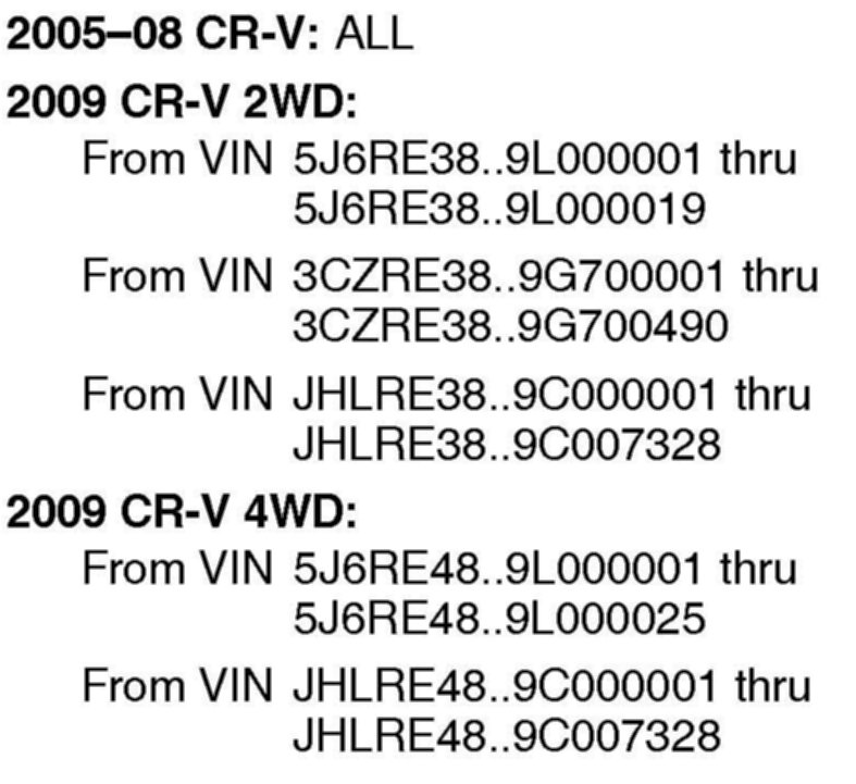 See VEHICLES AFFECTED