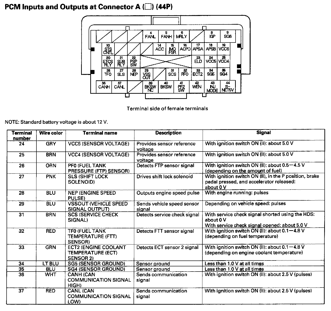 PCM Inputs And Outputs At Connector A (44P) Part 3: