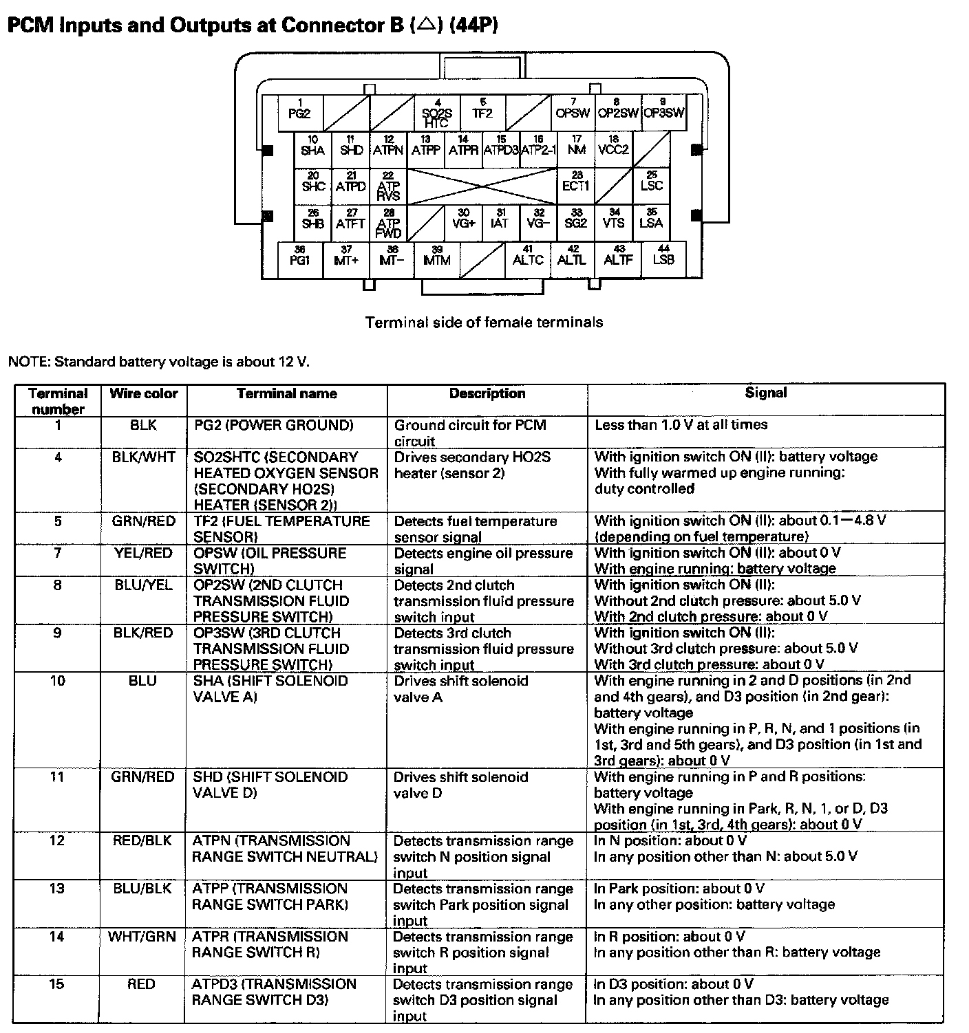 PCM Inputs And Outputs At Connector B (44P) Part 3: