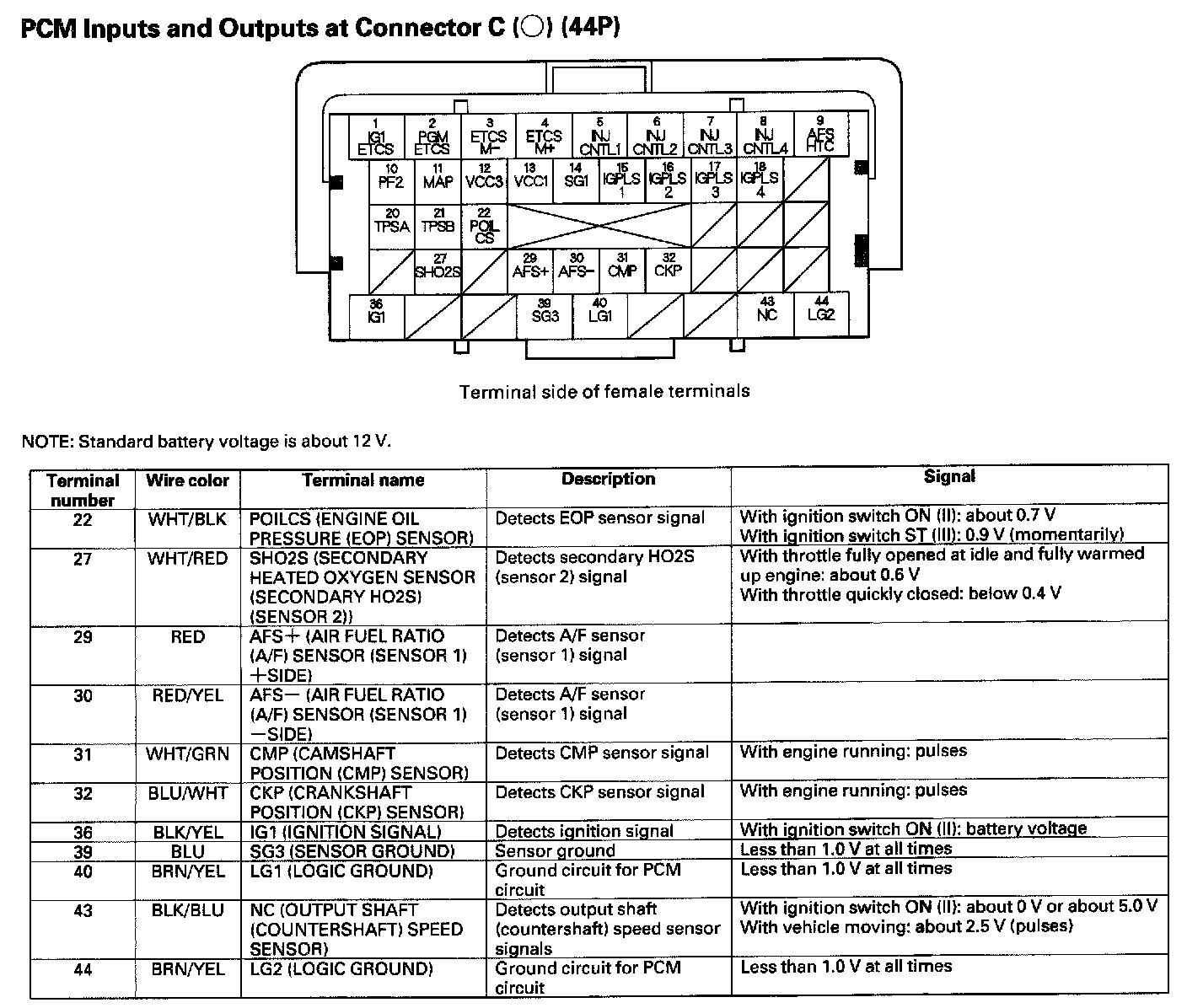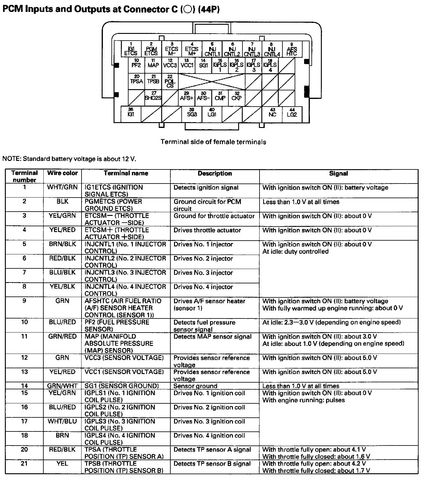 PCM Inputs And Outputs At Connector C (44P) Part 1: