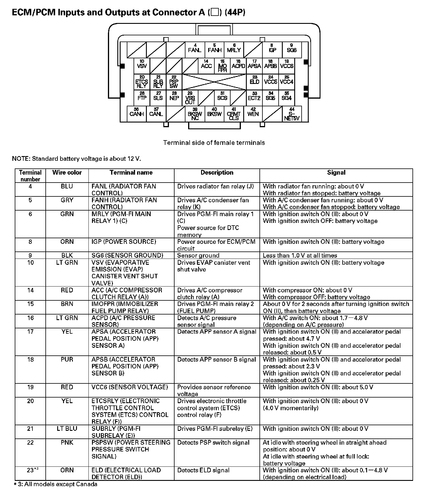 PCM Inputs And Outputs At Connector A (44P) - Part 3: