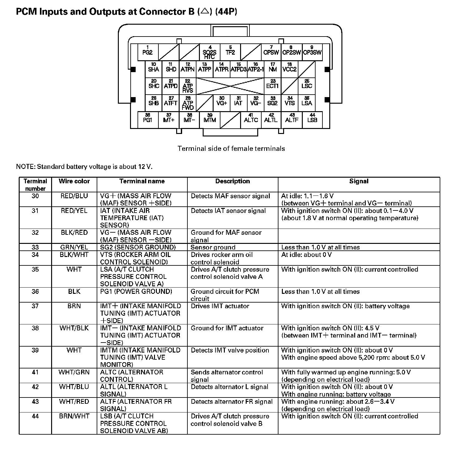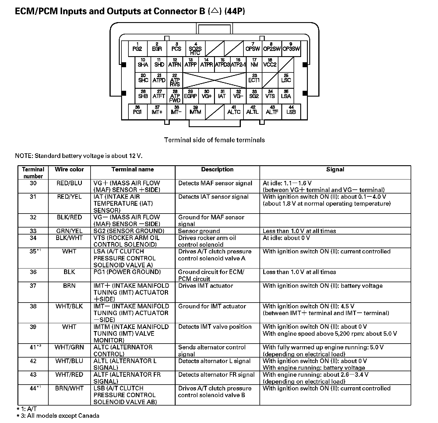 PCM Inputs And Outputs At Connector B (44P) - Part 1: