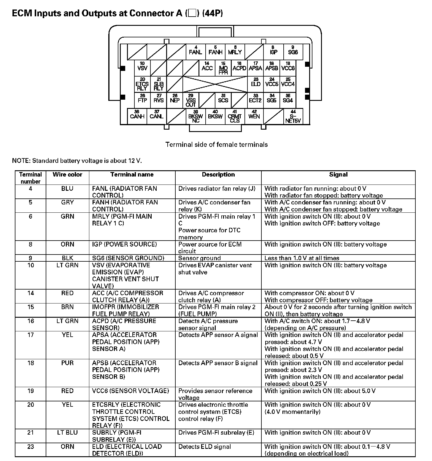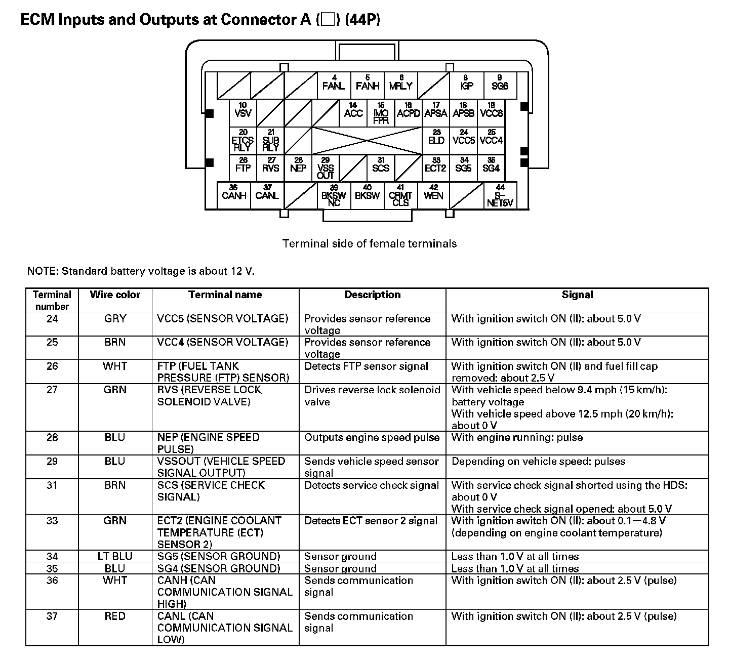 ECM Inputs And Outputs At Connector A (44P) Part 1: