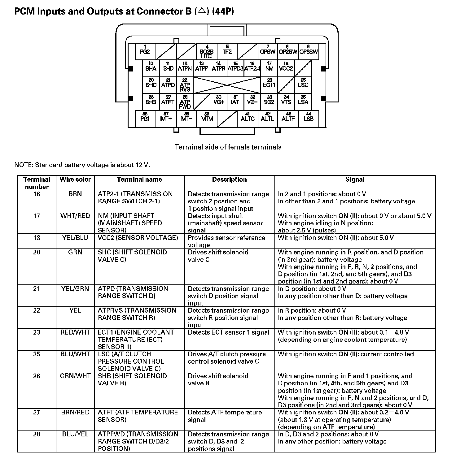 PCM Inputs And Outputs At Connector B (44P) - Part 3: