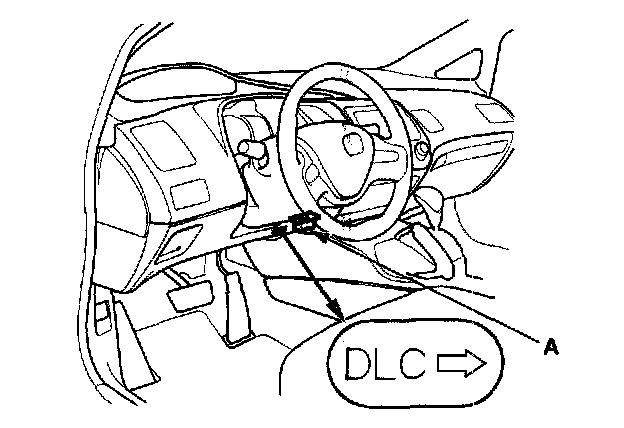 2. Connect the HDS to the data link connector (DLC) (A) located under the driver's side of the dashboard.