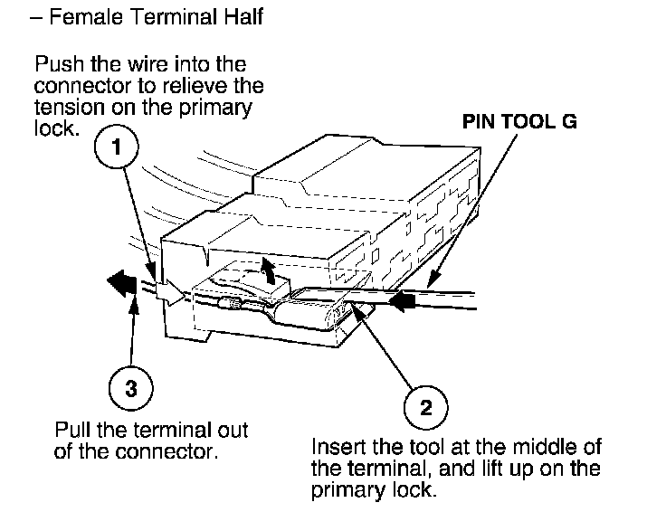 Home >> Honda >> 2006 >> Civic L4-1.8L >> Repair and Diagnosis >> Powertrain Management >> Computers and Control Systems >> Relays and Modules - Computers and Control Systems >> Engine Control Module >> Diagrams >> Diagnostic Aids >> Terminal Replacement Procedures >> How to Replace Connector Terminals
