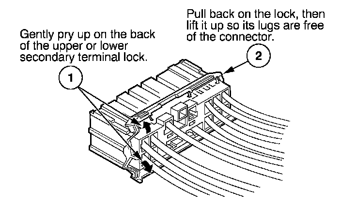 - If it has a secondary terminal lock, go to Connectors With a Secondary Lock. A secondary lock, found on most connectors on some models, is an additional locking device on the connector housing as a backup for the primary lock on the terminal.
