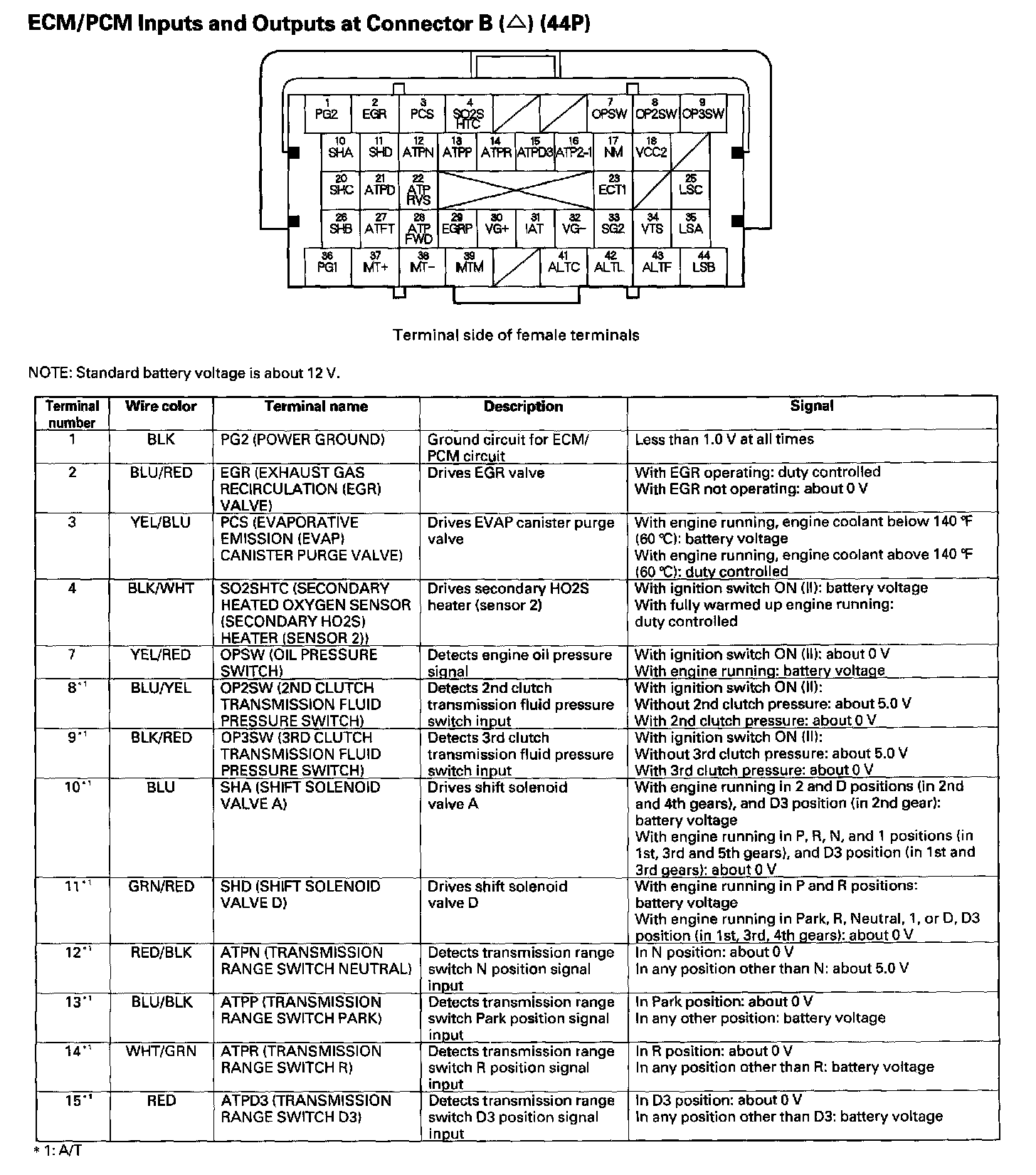ECM/PCM Inputs And Outputs At Connector B (44P) Part 1: