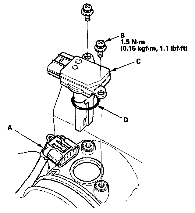 4. Install the sensor in the reverse order of removal with a new O-ring (D).