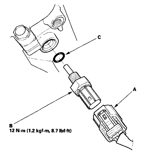 7. Install the sensor in the reverse order of removal with a new O-ring (C), then refill the radiator with engine coolant.