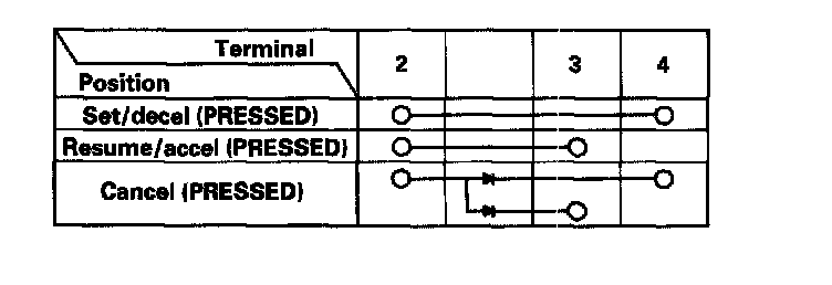 - If there is continuity, and it matches the table, but switch failure occurred on the cruise control actuator input test, check and repair the wire harness on the switch circuit.