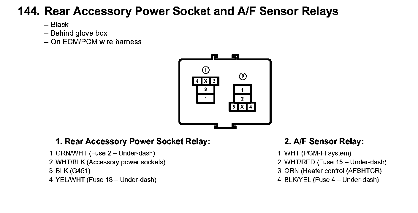 144. Rear Accessory Power Socket And A/F Sensor Relays: