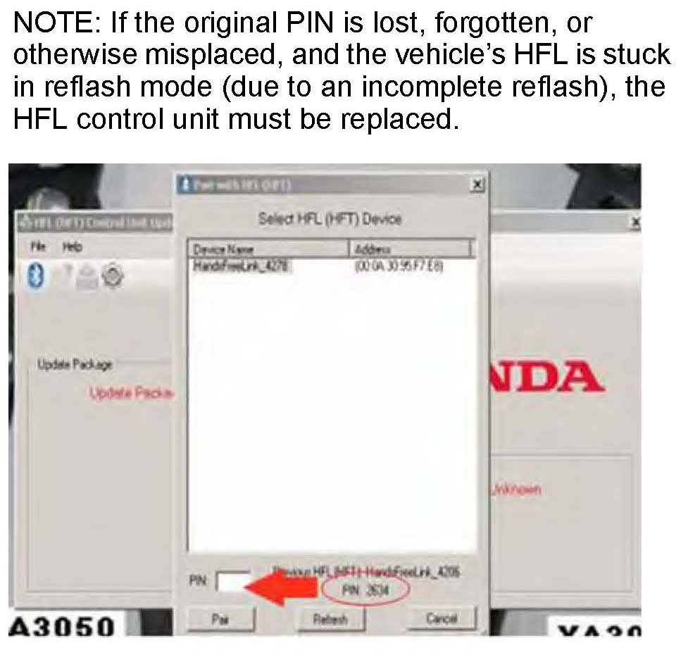 28. In the HFL update tool, enter the original 4-digit PIN you wrote down in step 7 into the lower left corner of the popup window. Click Pair to start the pairing process.