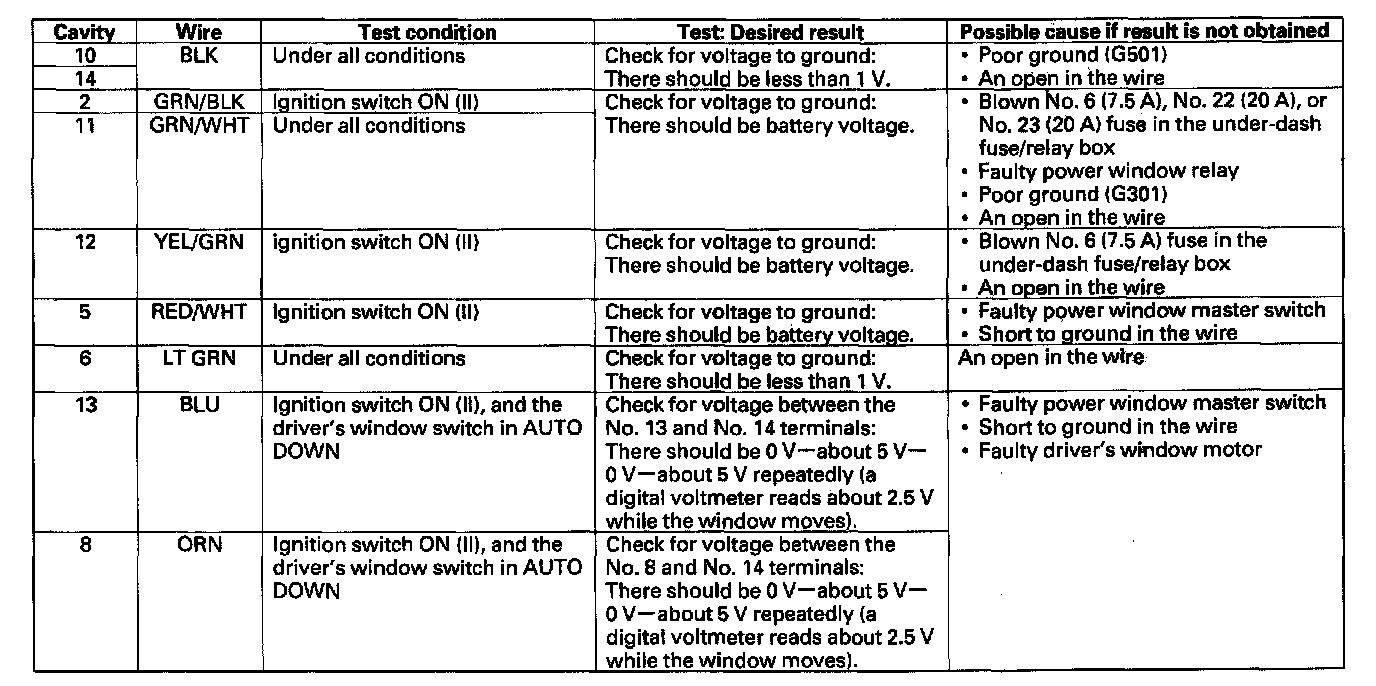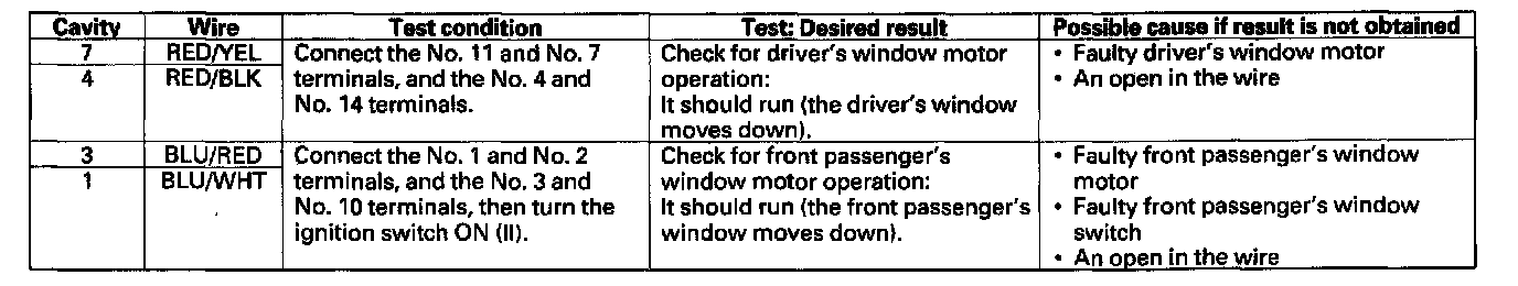 Home >> Honda >> 2006 >> Element 2WD L4-2.4L >> Repair and Diagnosis >> Windows and Glass >> Windows >> Power Window Switch >> Testing and Inspection >> Master Switch Input Test