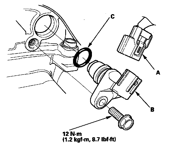 5. Install the sensor in the reverse order of removal with a new O-ring (C).