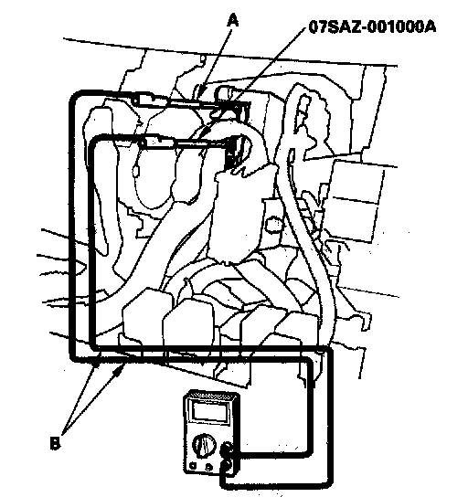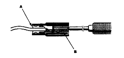 3. If you cannot get to the wire side of the connector or the wire side is sealed (A), disconnect the connector and probe the terminals (B) from the terminal side. Do not force the probe into the connector.