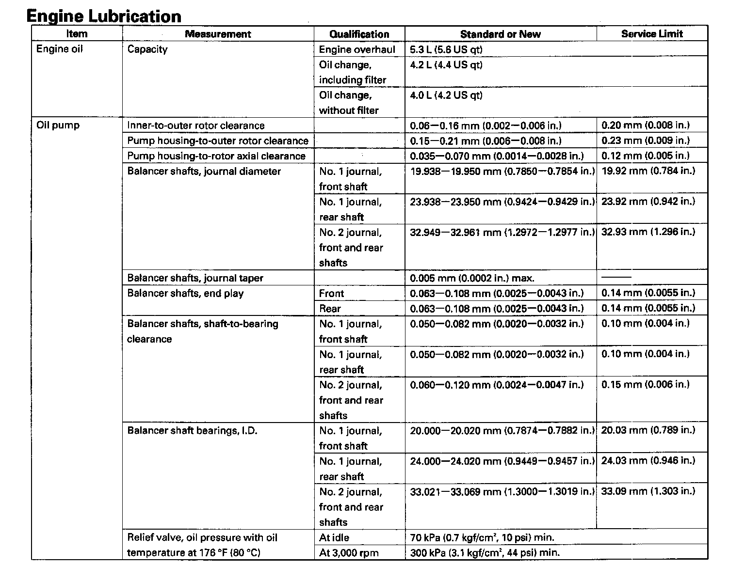 Standards And Service Limits - Engine Lubrication: