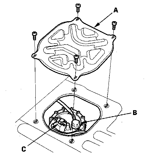 6. Disconnect the quick-connect fitting (C) from the fuel tank unit.