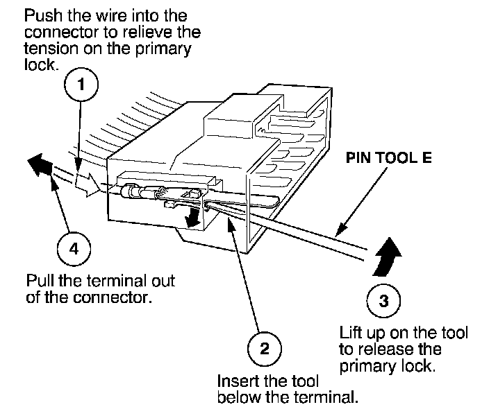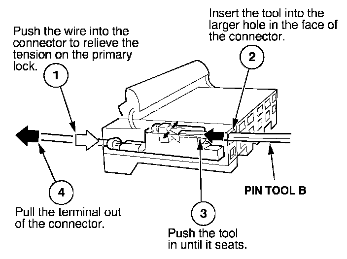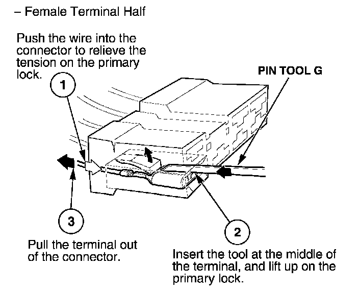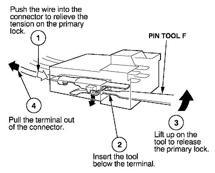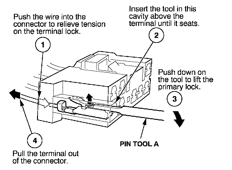 Before you begin, inspect the wire you are about to repair for damage and length. Make sure the wire will be long enough to make a terminal repair without stretching it when you reinstall the terminal in the connector. If the wire is too short, or if access to the connector is too restricted to make a terminal repair, you may need to install a pigtail terminal (a short length of wire with a factory-crimped terminal on it). Refer to HOW TO INSTALL PIGTAIL TERMINALS.