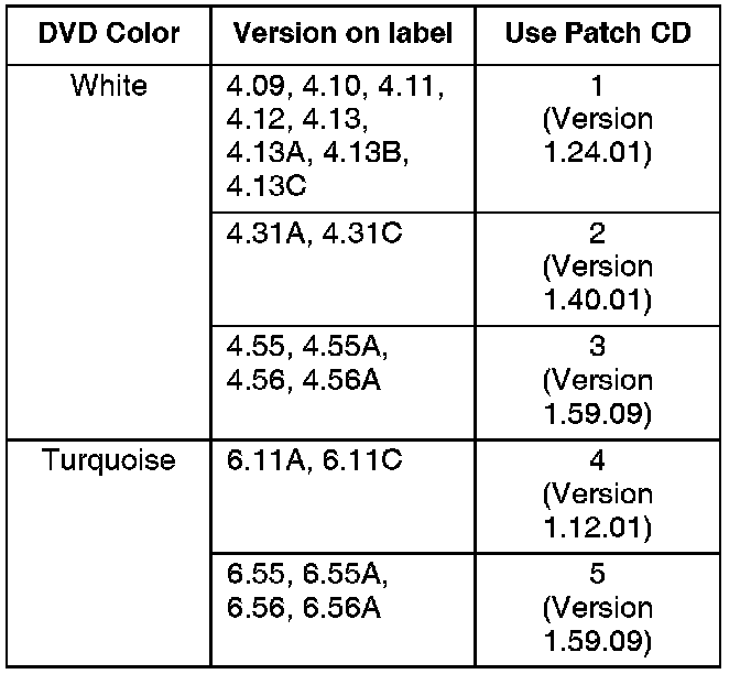 6. Using the DVD label color and the DVD version number, select the applicable patch CD from the album (they are labeled 1 thru 5) as shown above.