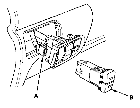 2. Disconnect the 13P connector (A), then release the clips of the cruise control main switch, and push the cruise control main switch (B) out of the panel.
