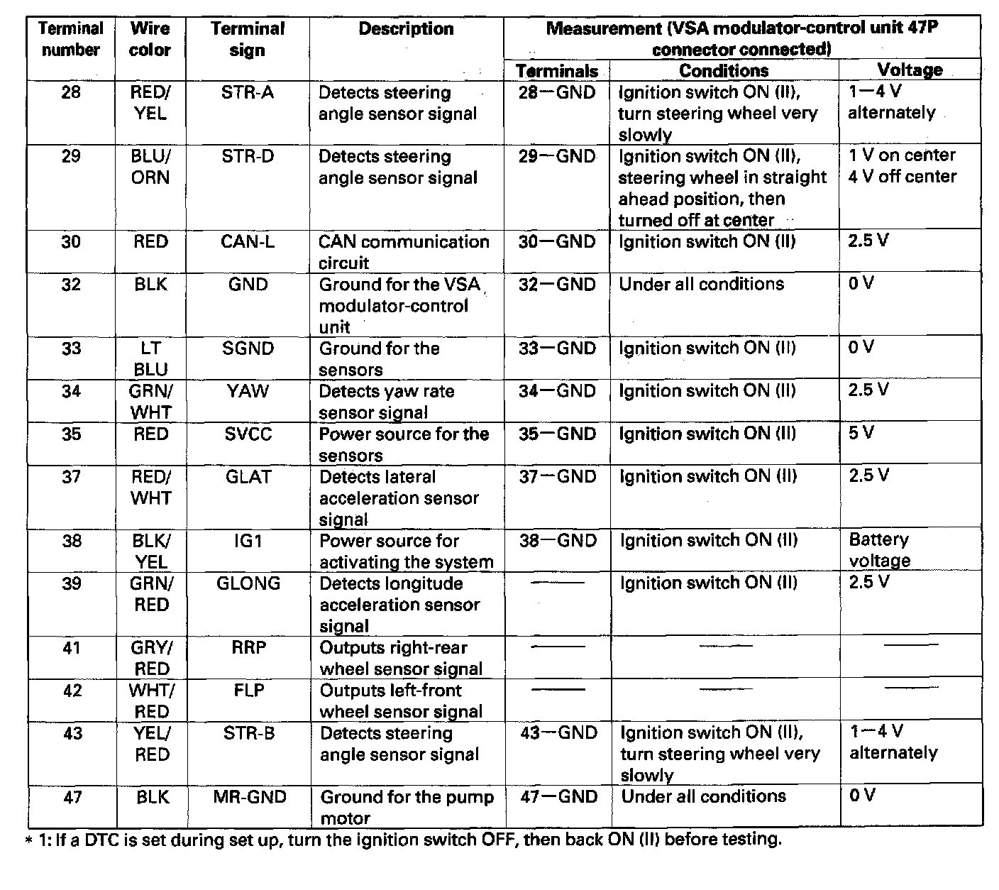 VSA Modulator-Control Unit Inputs and Outputs for 47P Connector: