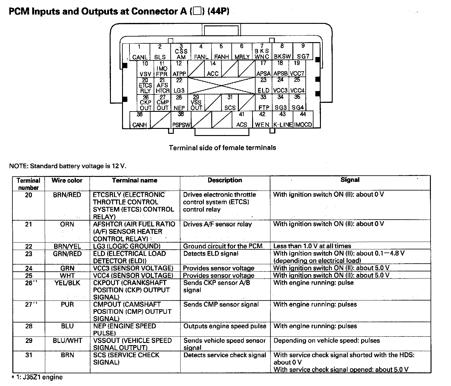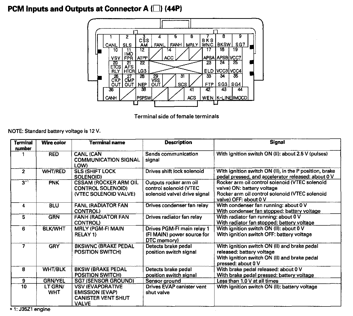 PCM Inputs And Outputs At Connector A (44P) Part 1: