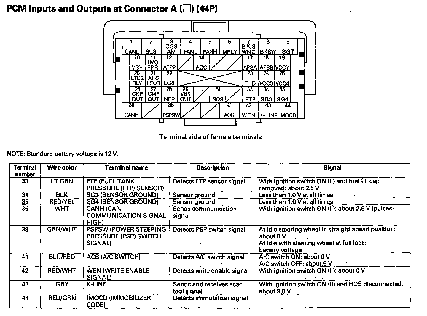 PCM Inputs And Outputs At Connector A (44P) Part 4: