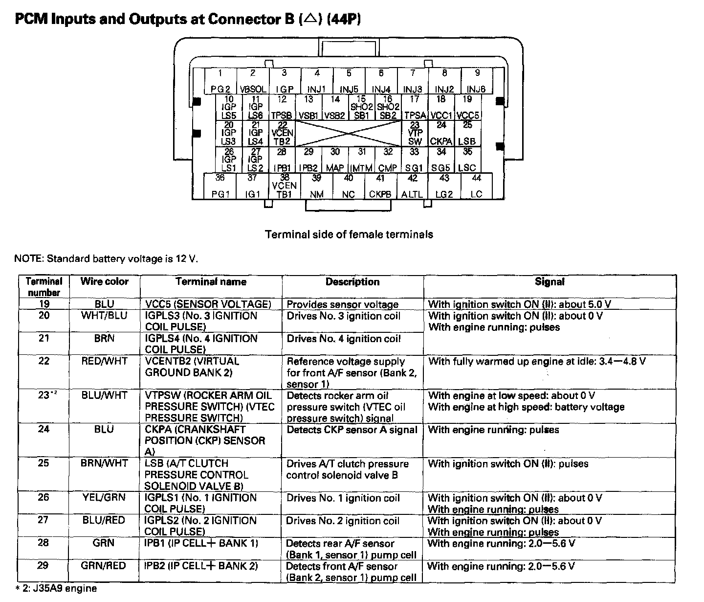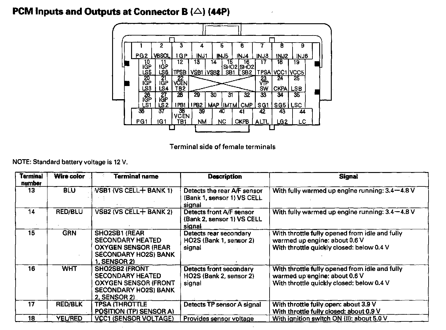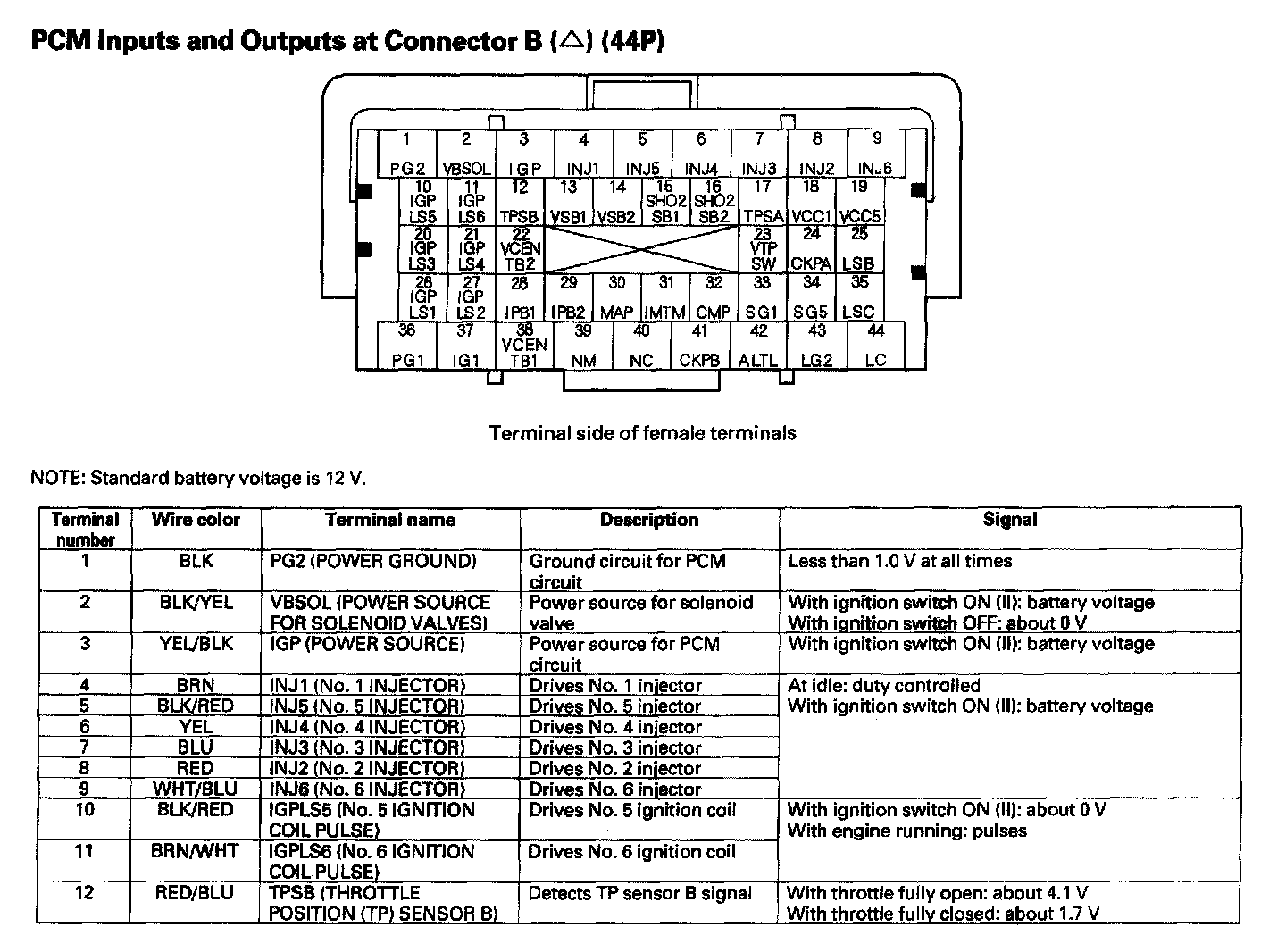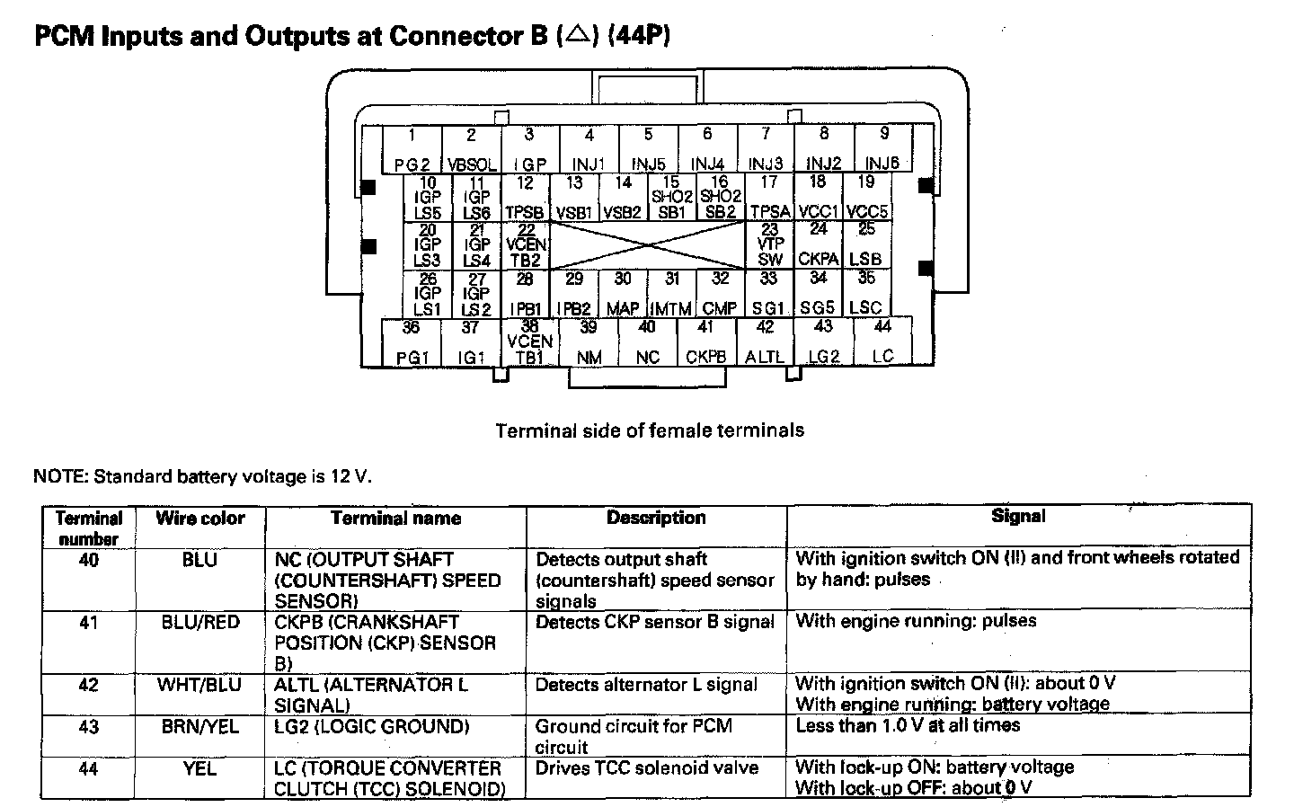PCM Inputs And Outputs At Connector B (44P) Part 4: