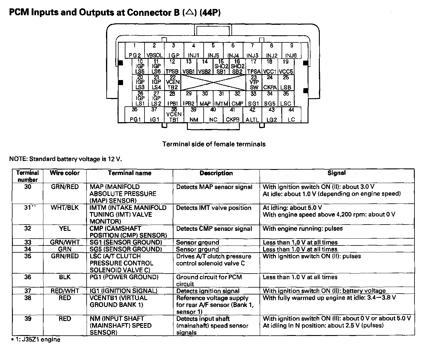 PCM Inputs And Outputs At Connector B (44P) Part 1: