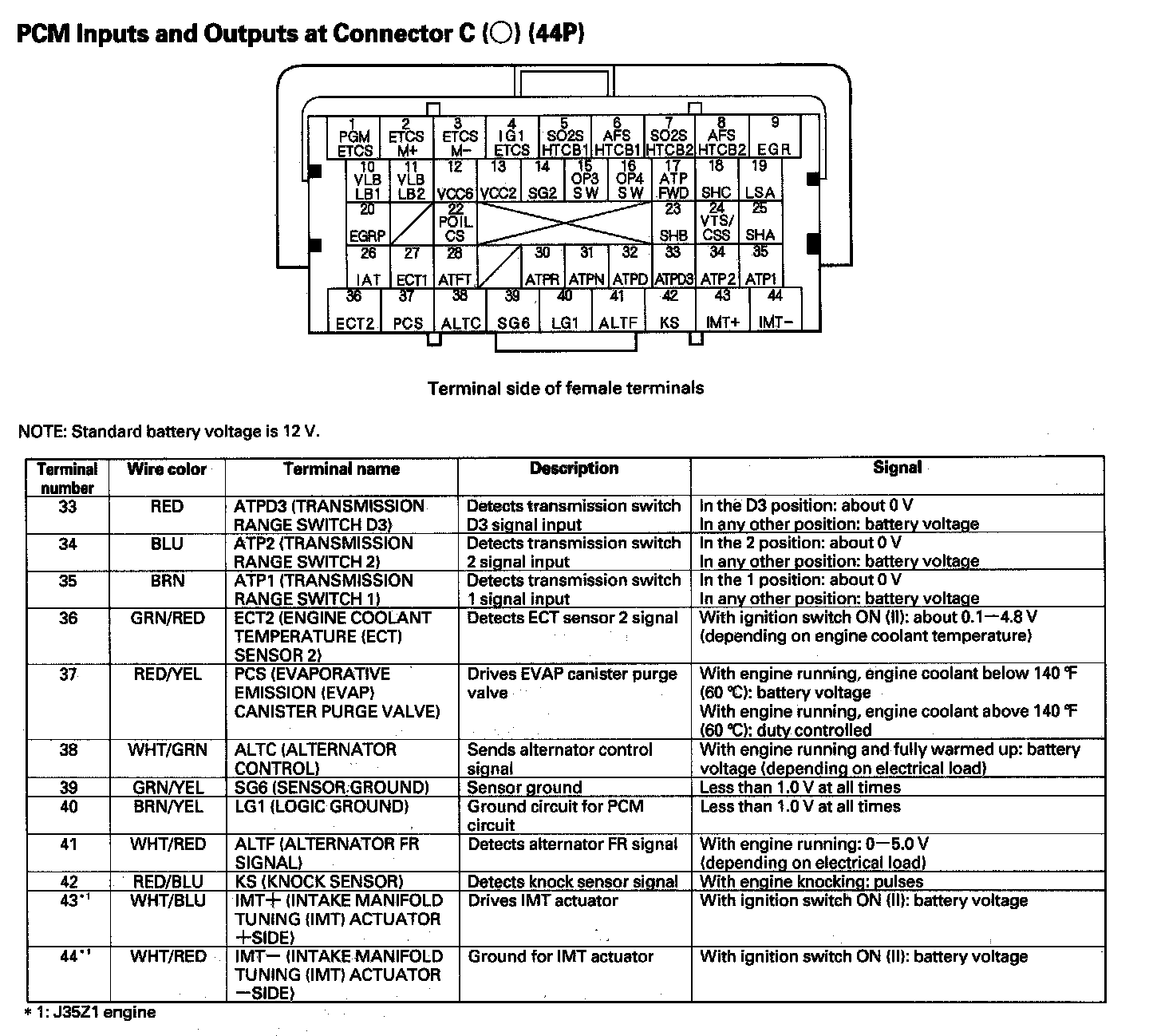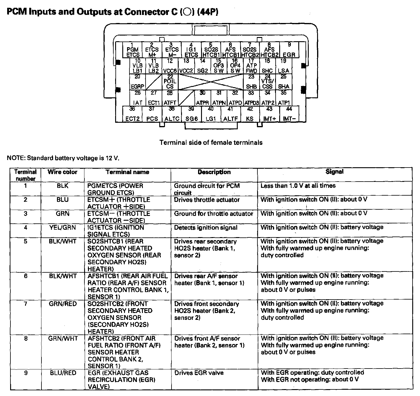 PCM Inputs And Outputs At Connector C (44P) Part 1: