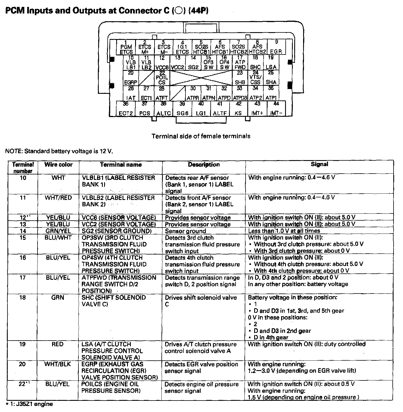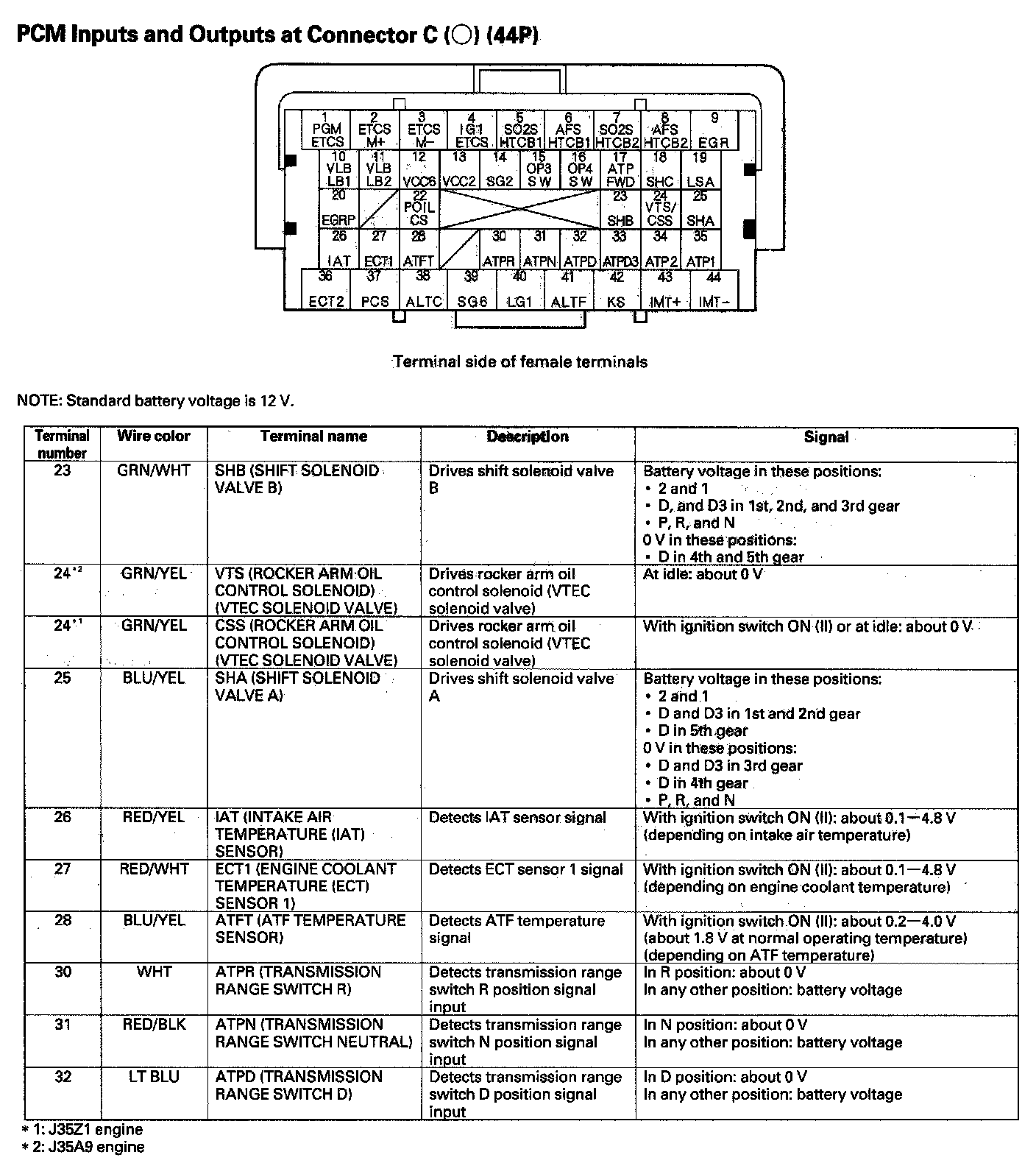 PCM Inputs And Outputs At Connector C (44P) Part 3: