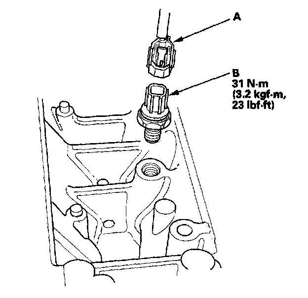 3. Disconnect the knock sensor 1P connector (A), then remove the knock sensor (B).