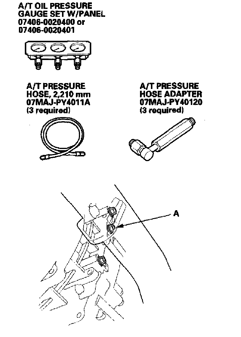 ^ A/T clutch pressure gauge set 07406-0020400 or 07406-0020401
