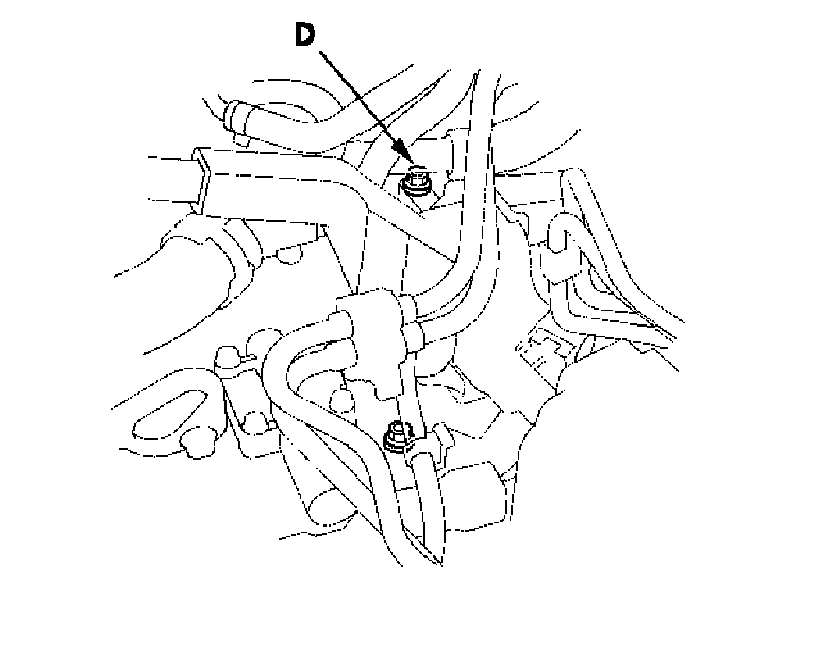 12. Remove the intake manifold cover and intake air duct, and connect the oil pressure gauge to the 2nd clutch pressure inspection port (D). Then temporarily install the intake air duct.
