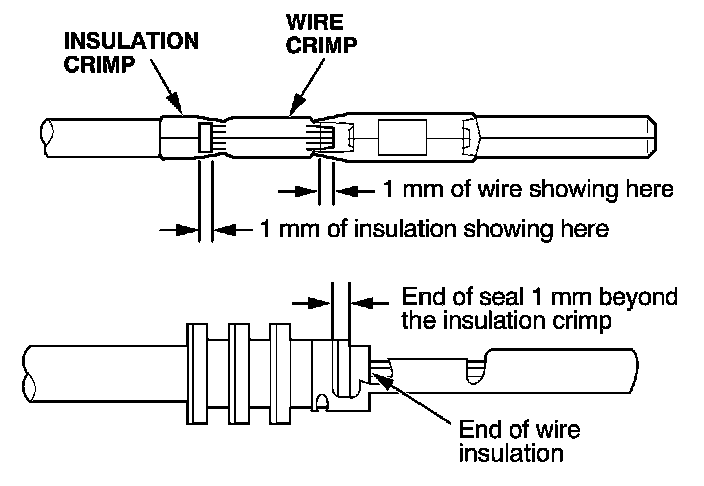 - If you do not have a wire seal, then use the next larger size crimp slot. Position the crimping tool over the insulation crimp section of the terminal, then squeeze the tool with both hands until the stops make contact.