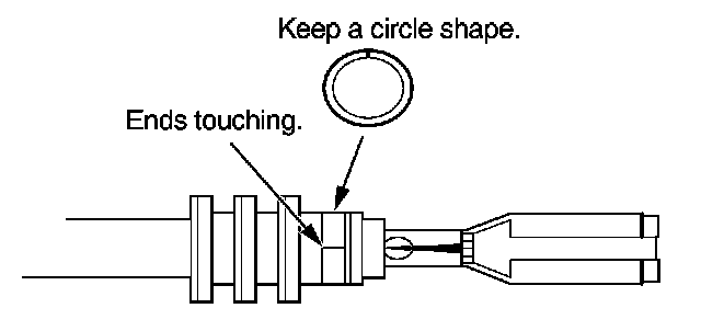 3. Strip the insulation off the end of the wire so the wire fits in the new terminal as shown. (If the wire has a wire seal, replace it with a new one from the kit.)