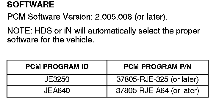 Use the HDS with software version 2.005.008 (or later) to update the PCM PGM-FI software.