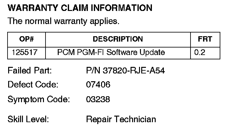 1. Use the HDS with software version 2.005.008 or later to update the PCM PGM-FI software (refer to Service Bulletin 01-023, Updating the Control Units/ Modules).