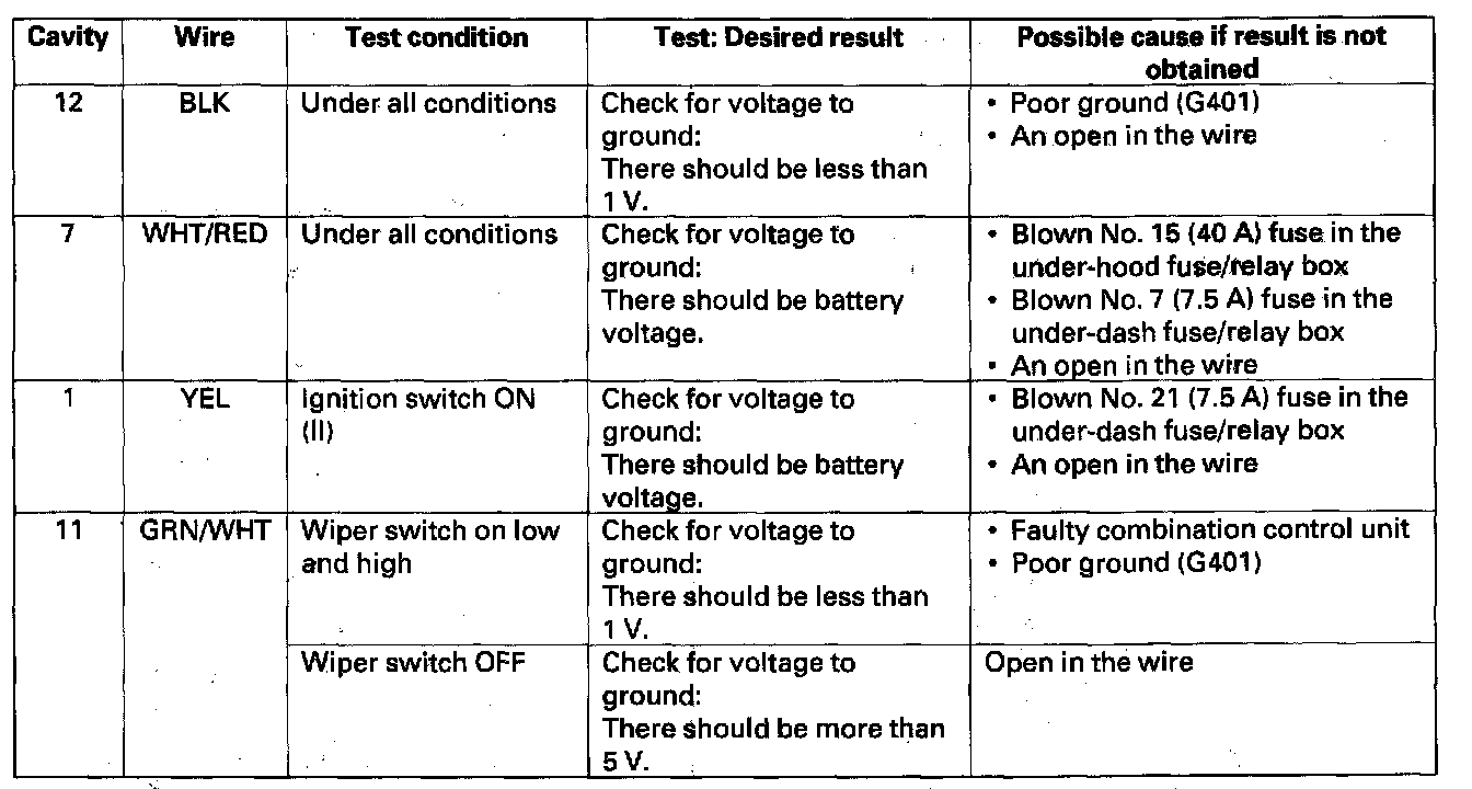 Combination Switch Control Unit Input Test1. Before troubleshooting the wiper/washer system, troubleshoot the B-CAN System Diagnosis Test Mode A.