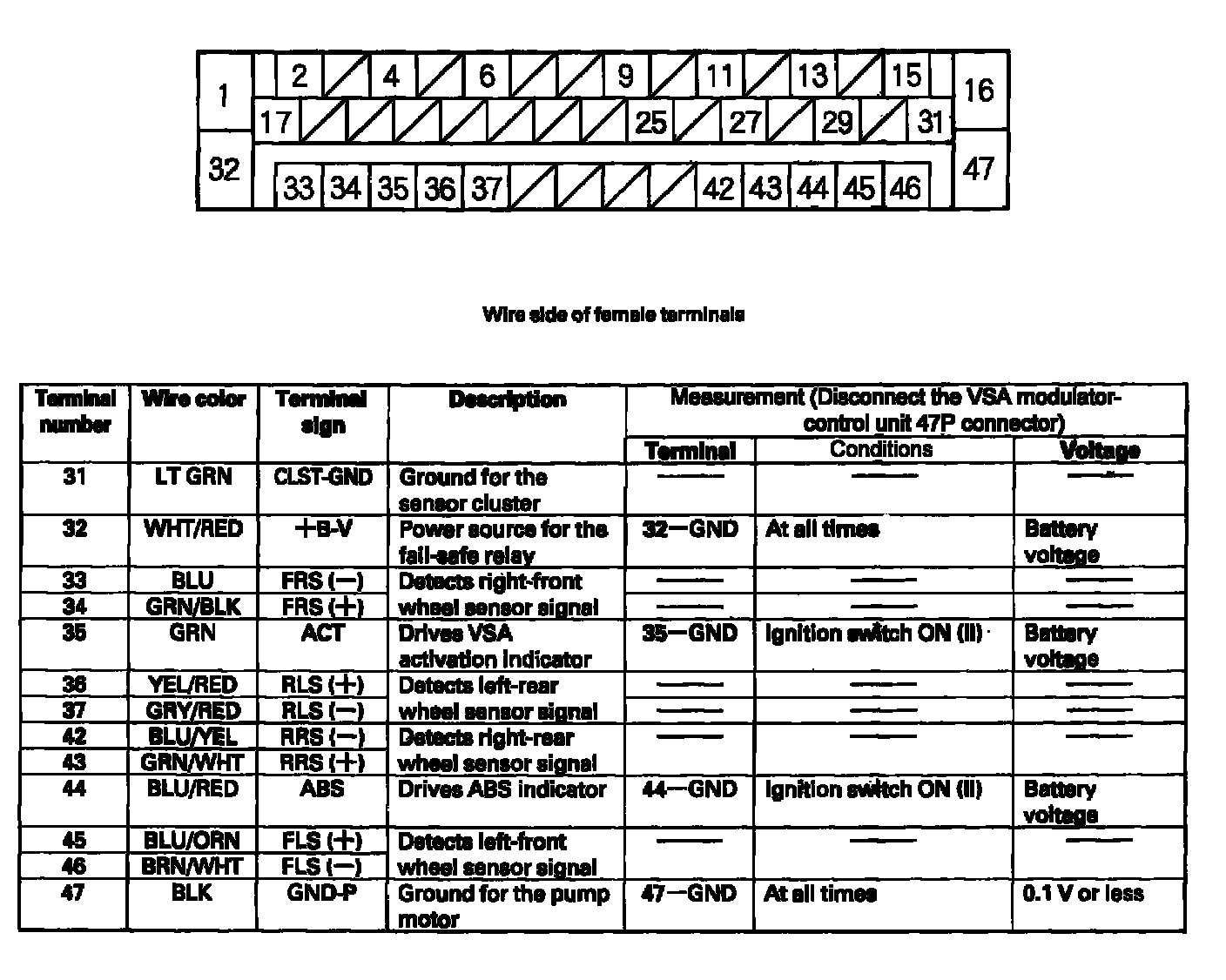 VSA Modulator-Control Unit Inputs and Outputs For 47P Connector: