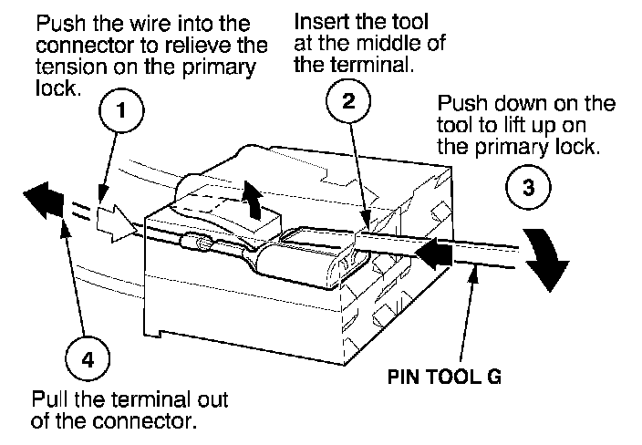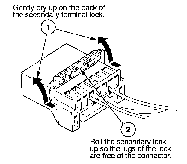 - If it has a secondary terminal lock, go to Connectors With a Secondary Lock. A secondary lock, found on most connectors on some models, is an additional locking device on the connector housing as backup for the primary lock on the terminal.