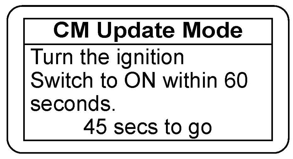 16. If an error occurs during the updating procedure, an error message appears. Keep the ignition switch in ON (II). Press ENTER to display the error code. Refer to the CM Update Error Code Table in the MVCI User Guide for mor information about the code and its solutions.