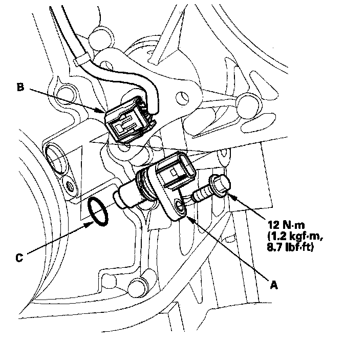 3. Install the sensor in the reverse order of removal with a new O-ring (C).