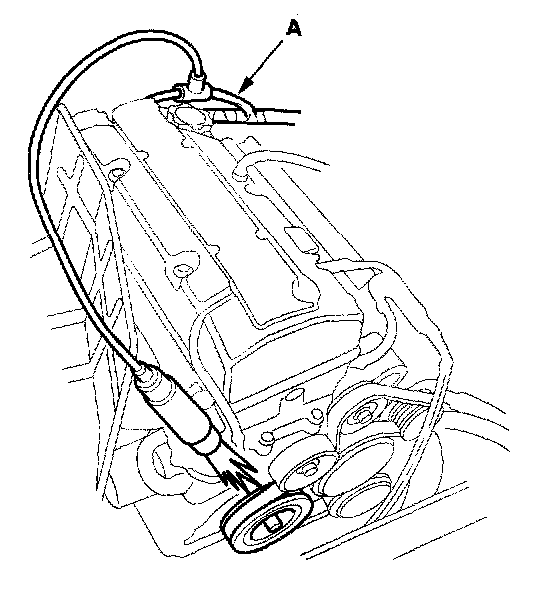 7. Free the service loop (A) from the engine wire harness, then connect the timing light to the service loop.
