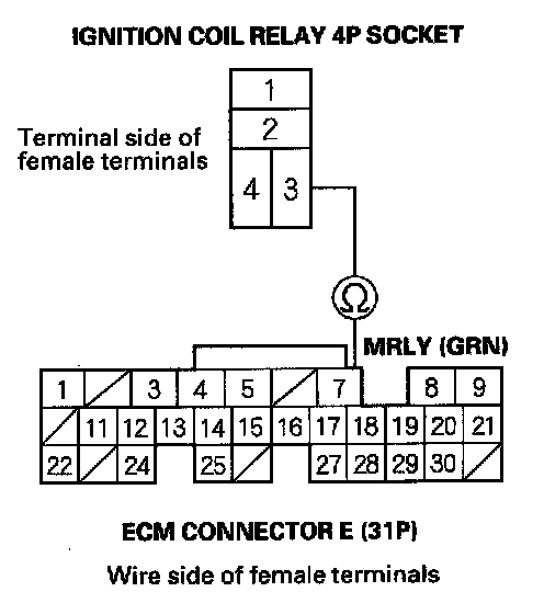 NO - Repair an open in the wire between ignition coil relay 4P socket and the ECM (E7).