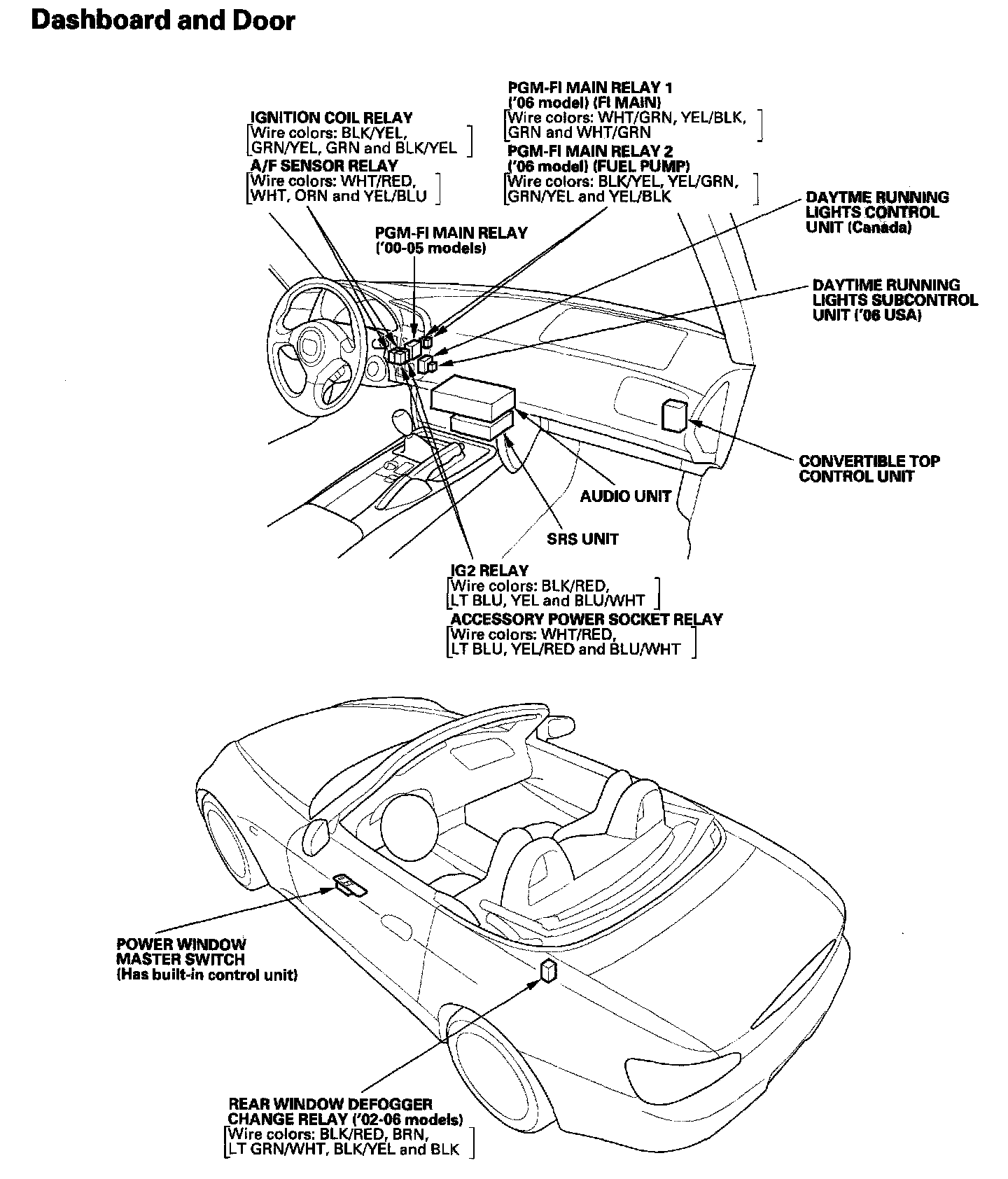 Relay And Control Unit Locations - Dashboard And Door: