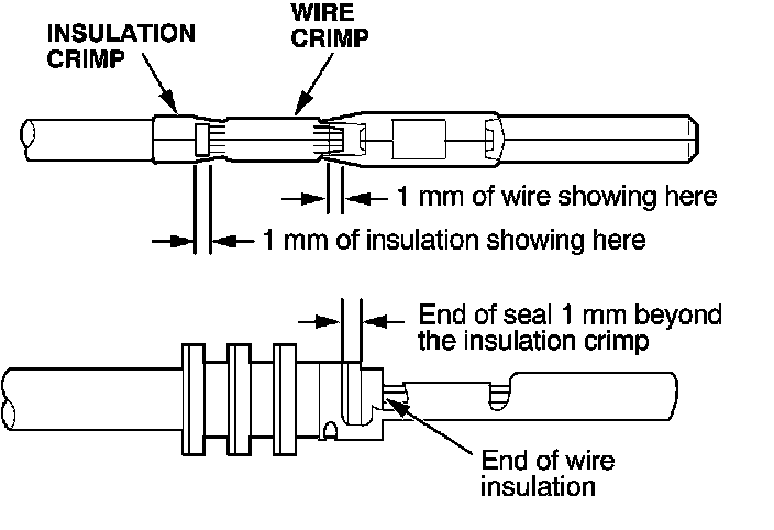 - If you do not have a wire seal, then use the next larger size crimp slot. Position the crimping tool over the insulation crimp section of the terminal, then squeeze the tool with both hands until the stops make contact.