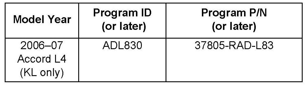 The updated PGM-FI software program IDs and P/Ns are listed below. If the HDS and MVCI is loaded with the latest software, and it displays No Update Needed during the update, the software for this service bulletin is already installed.